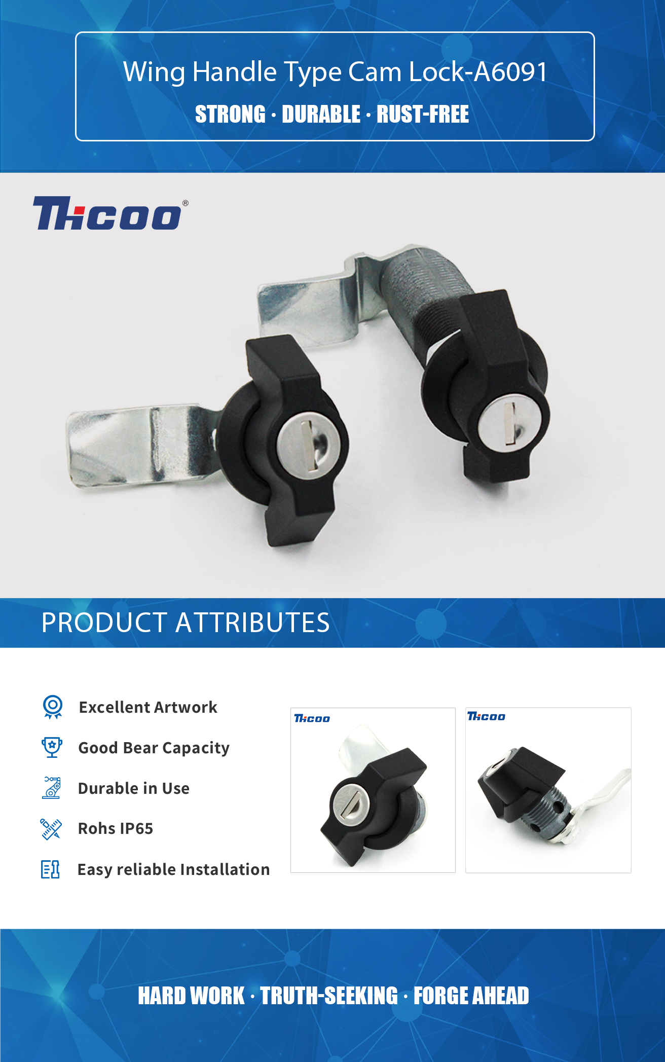 لدينا معمل الاختبار الخاص بنا ومعدات الفحص المتطورة والكاملة ، والتي يمكن أن تضمن جودة المنتجات. Wing Handle Type Cam Lock-A6091 هو قفل كام مع 6 دبوس وكأس 3 دبوس. وهي متوفرة في مجموعات ألوان مختلفة وتأتي مع ضمان المصنع لمدة عام.