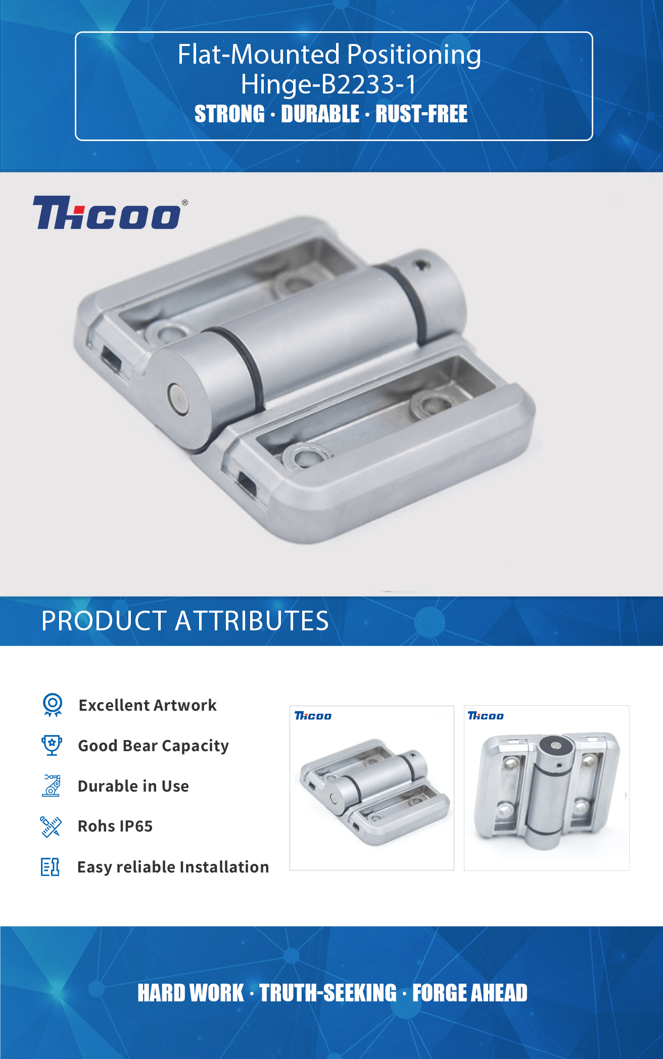 لدينا معمل الاختبار الخاص بنا ومعدات الفحص المتطورة والكاملة ، والتي يمكن أن تضمن جودة المنتجات. Hinge-Mounted Positioning Hinge-B2233-1 هو نوع من المفصلات المصممة لتثبيت الباب أو النافذة أو أي لوحة متحركة أخرى في موضع معين عندما لا تكون قيد الاستخدام. عادة ما يتم تثبيت هذه المفصلات على سطح اللوحة ، وليس على الحافة