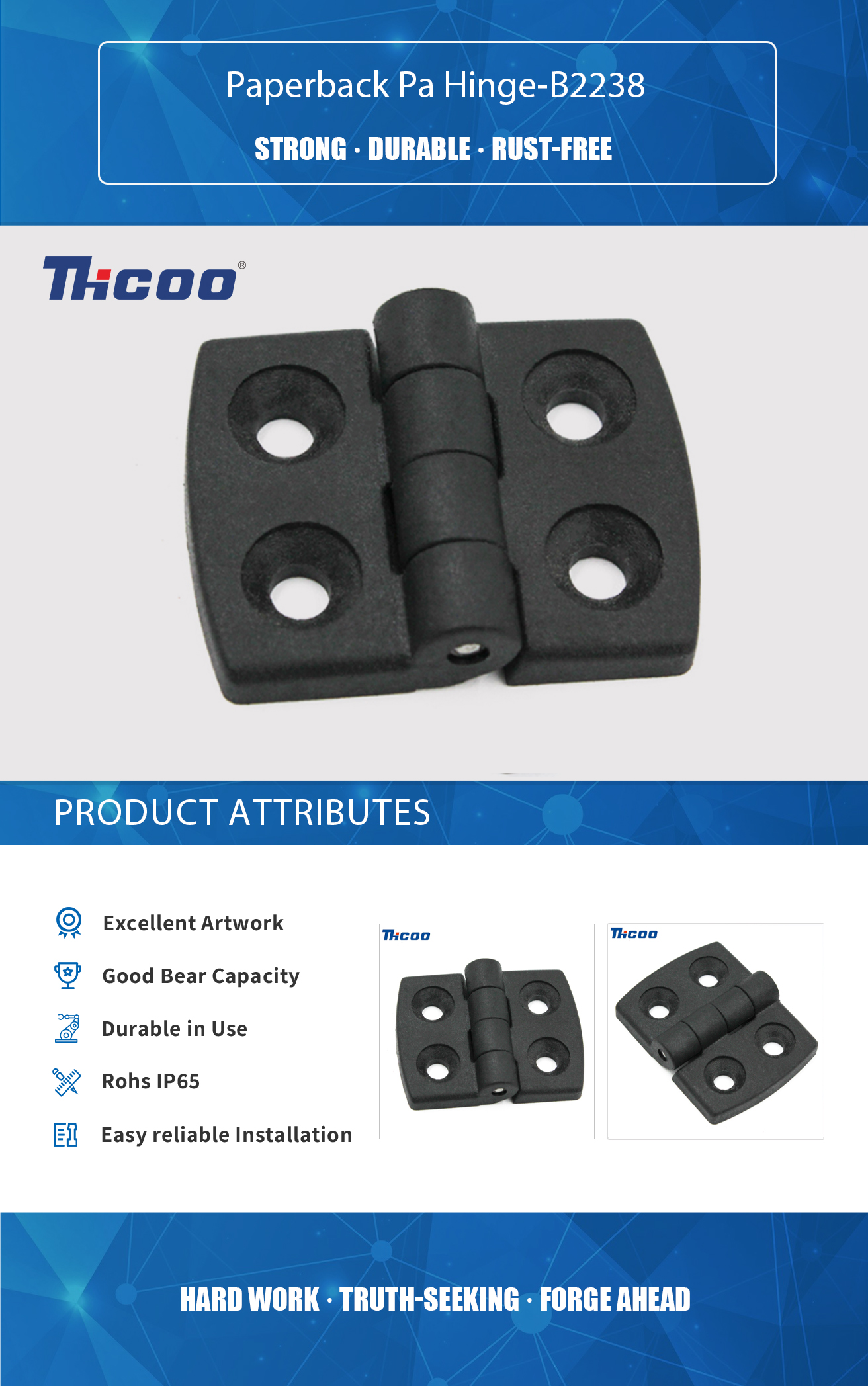 لدينا معمل الاختبار الخاص بنا ومعدات الفحص المتطورة والكاملة ، والتي يمكن أن تضمن جودة المنتجات. غلاف عادي Pa Hinge-B2238 هو نوع من المفصلات المصنوعة من مادة سوداء اللون وتستخدم عادةً لإبقاء الكتاب مفتوحًا بزاوية معينة. عادة ما تصنع المفصلات الورقية من مادة مرنة ، مثل البلاستيك أو معدن رفيع ، وهي مصممة لتكون خفيفة الوزن ومتينة.
