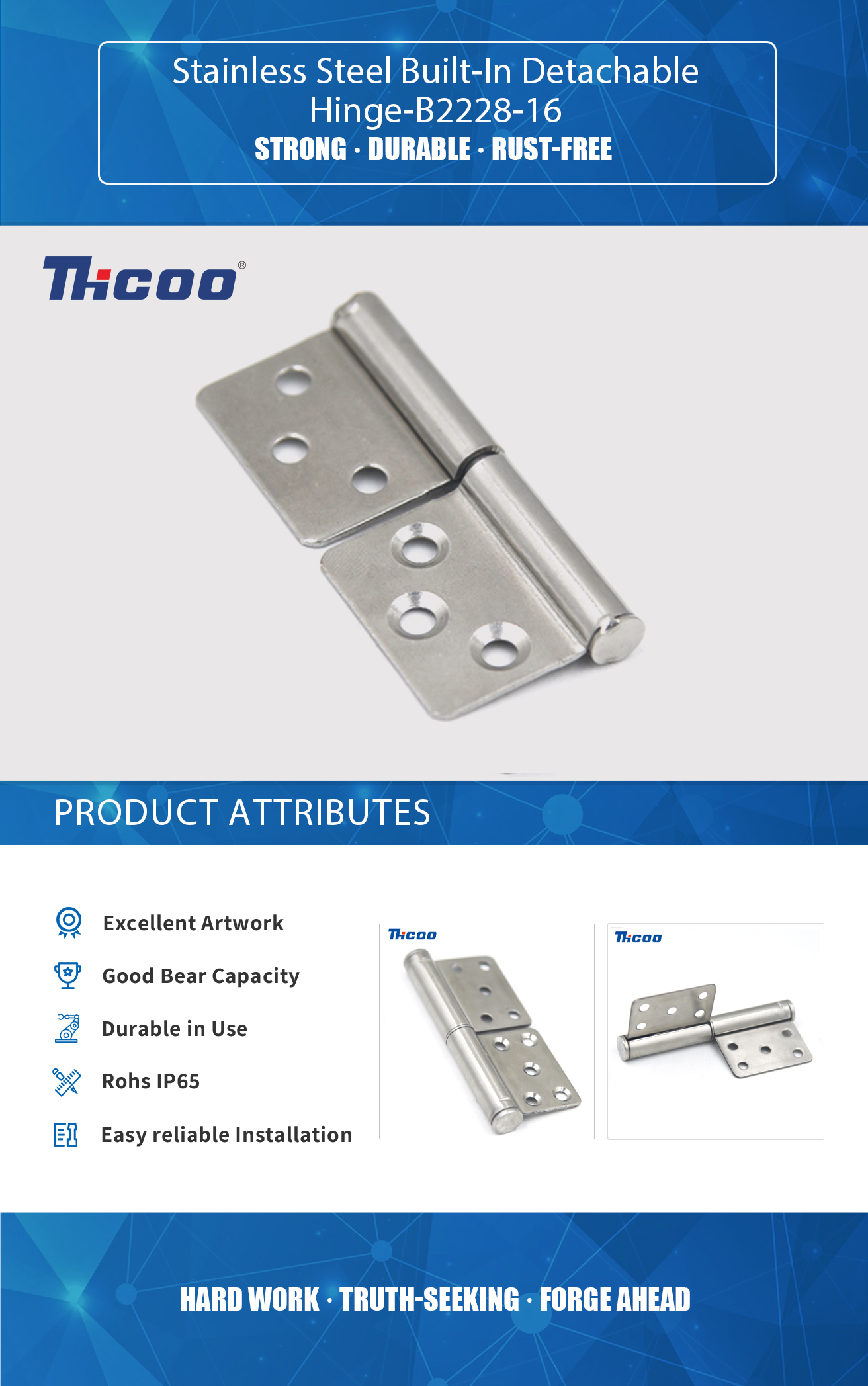 مفصلات مدمجة من الفولاذ المقاوم للصدأ قابلة للفصل- B2228-16